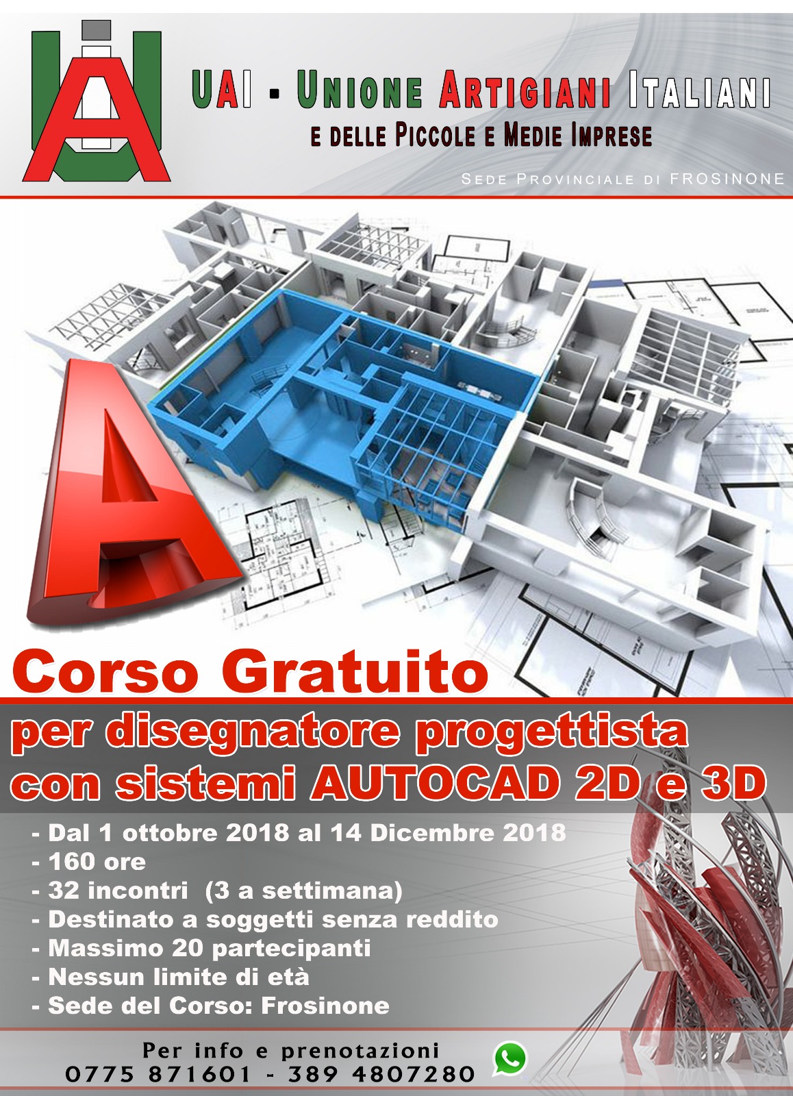 160 ore per diventare operatore di AutoCAD 2D e 3D e arricchire il proprio curriculum di uno strumento fondamentale. E’ l’opportunità offerta dell’Unione Artigiani Italiani di Frosinone che dal 1 Ottobre darà vita ad un corso affidato ad un insegnante esperto con alle spalle circa 3mila ore di insegnamento del sistema AutoCAD. Ottenere l’attestato di operatore CAD consentirà ai corsisti di aprirsi ad un settore in continua espansione come quello della progettazione che spazia in numerosi campi. Sono molte le aziende, dalla piccola industria alle grandi realtà, a ricercare personale profilato per la progettazione AutoCAD e spesso non ne trovano: “La UAI di Frosinone – spiega il responsabile amministrativo Michele Francesco Abballe – vuole continuare a scommettere sulla formazione e offrire l’opportunità a 20 persone, senza reddito, di acquisire gratuitamente un attestato che potrebbe aprire loro le porte al mondo del lavoro”. Le lezioni si terranno il lunedì, mercoledì e venerdì dalle 14 alle 19 nella sede dell’Unione Artigiani Italiani di Frosinone in via Marco Tullio Cicerone 168 (ex 188). In programma 32 incontri fino al 14 Dicembre quando ci sarà la consegna dei preziosi attestati di esperto AutoCAD 2D e 3D. Per informazioni e prenotazioni (il corso prevede 20 partecipanti) è possibile chiamare lo 0775 871601.